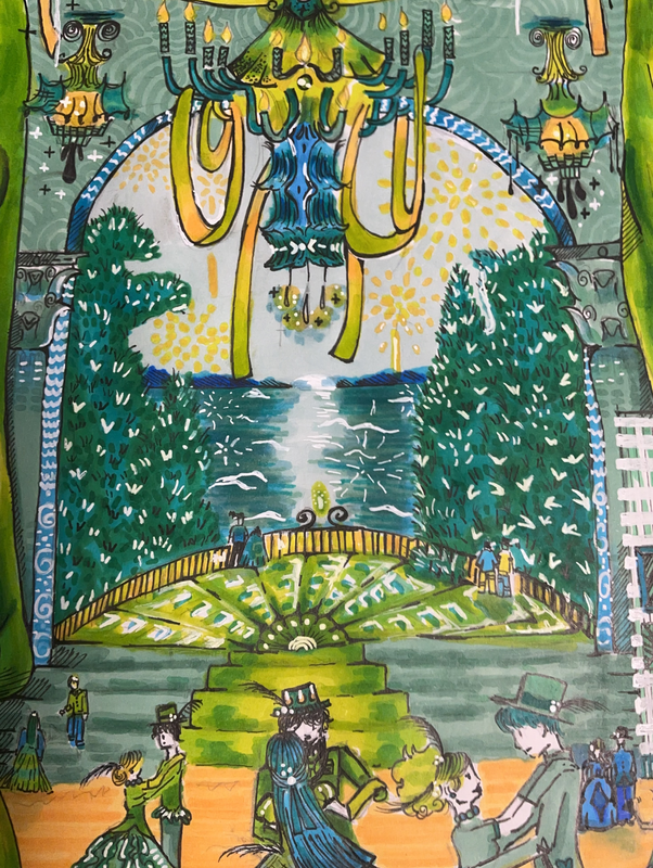 Ce choix de couleurs permettait de rappeler l’univers de l’entreprise tout en apportant un aspect festif. Pour ce projet, j’ai utilisé différents outils comme des feutres fins, des marqueurs, un feutre blanc et des crayons secs